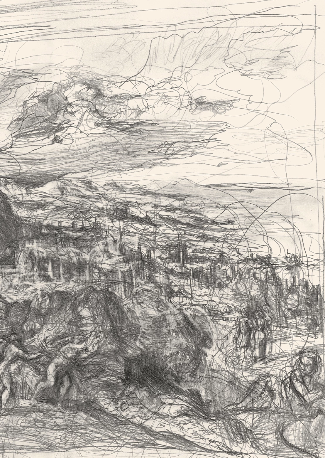Taken by The Death of Eurydice by Nicolo dell’Abate. The drawing is essentially a versioning of the spectacle. Featuring an early visitor residue aspect alongside the supplement of the swept frame.